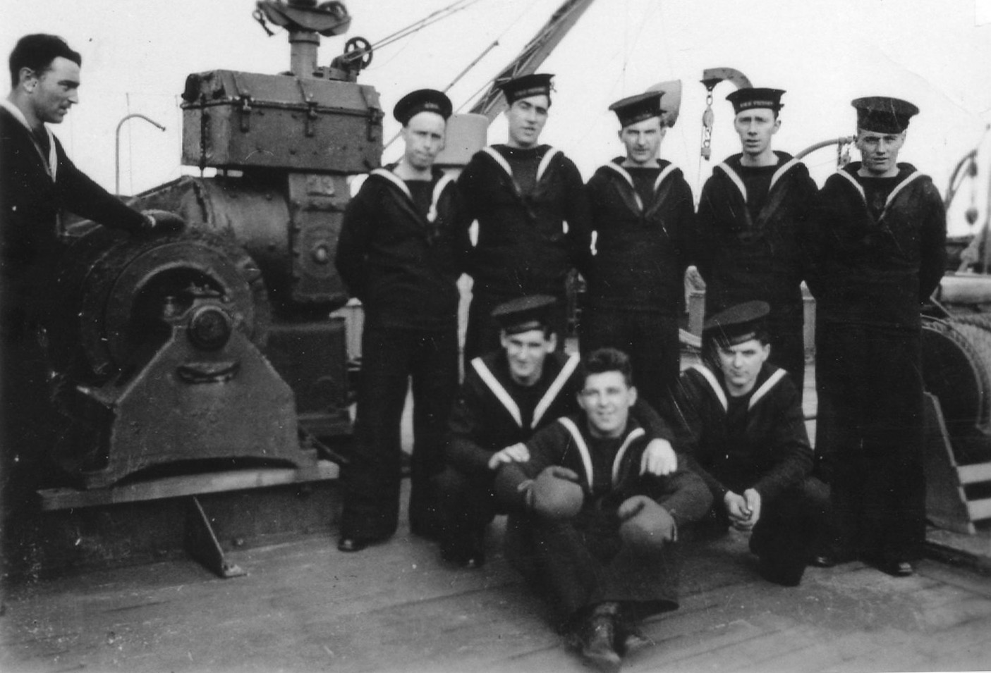 The 1st person in the back row has been identified as Henry Trimm (1916-)of Grand Bank, NL.